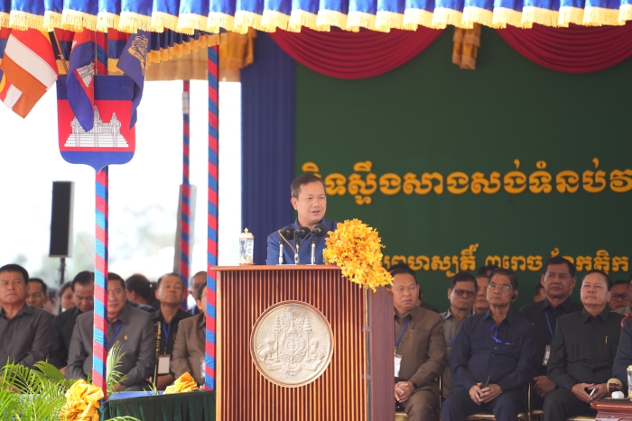 柬埔寨首相洪玛奈向集团下属企业和记娱乐重型装备集团股份有限公司董事长韩晓军交付截流石。柬埔寨能源与矿产部部长高拉达那、柬埔寨国公省省长密杜娜·布通、中国驻柬埔寨大使王文天、中国驻柬使馆经商处参赞钟洁等中柬政要,中柬主流媒体与社会各界人士等1800余人,共同见证这一中柬务实合作、增进民生福祉项目建设取得突破性进展的历史时刻。
