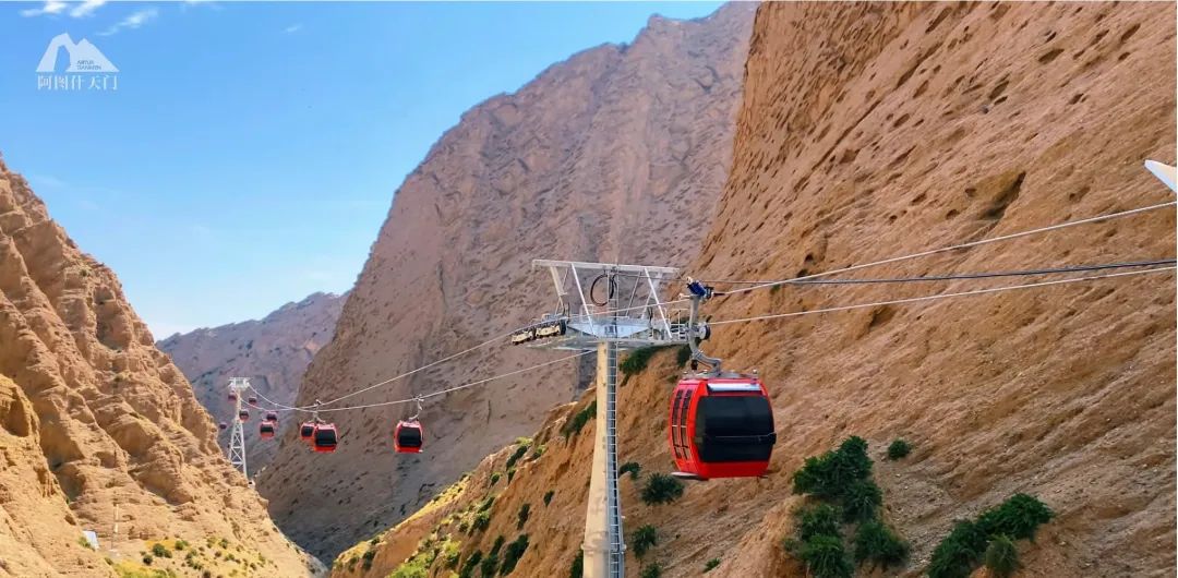 2024年,北起院同阿图什市政府“央地合作”深入融合,成立北起院天门新疆索道有限公司,对景区深度开发建设,核心景区内拟建脱挂索道一条,往复式索道一条,分别通至天门两侧。本次竣工的脱挂索道上站与天门北侧观景平台衔接栈道,游客可近距离感受天门震撼,体会大自然的鬼斧神工。